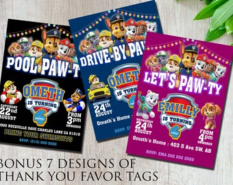 Editable paw patrol invitation. Digital file only you will receive a 5 x 7 file in pdf and jpeg format for the front and back design. Invite guests by email or text message and track rsvps on the go.