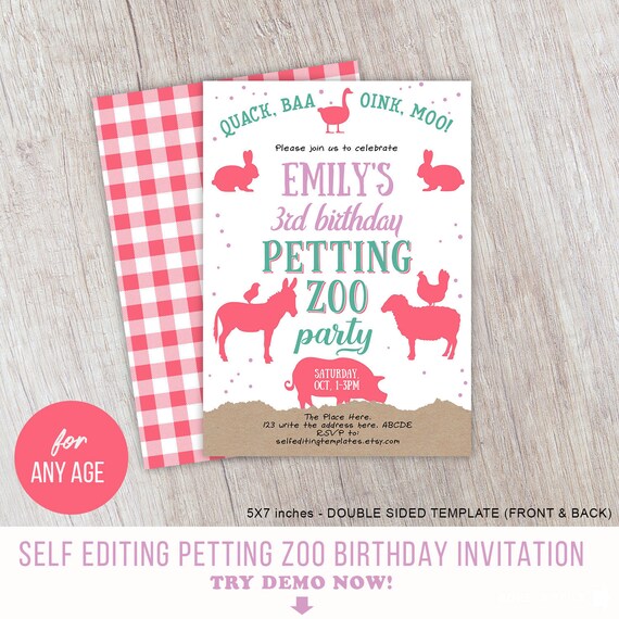 Find customizable petting zoo invitations announcements of all sizes. The petting zoo is always crowded in a holiday season she like when she can meet a lot of people in the petting zoo and playing with the animals. This listing is for a printable or printed pink petting zoo farm animal birthday party invitation customized with your childs photo party details. Please select the printable or printed option and provide your party details in the notes section when ordering.