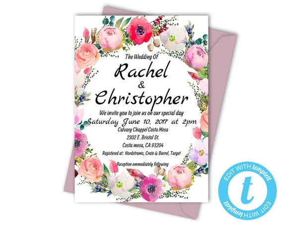 Instantly download pink floral wedding invitation card template sample example in microsoft word doc adobe photoshop psd apple pages microsoft publisher format. Minimalistic floral wedding invitation template. Blush floral wedding invitation templates blush wedding invitations blush printable wedding invite pink floral wedding invitation template sale price 1169 1169 1299 original price 1299 10 off. This collection includes 6.