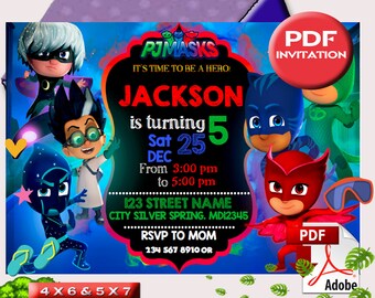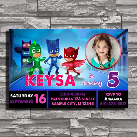 5 out of 5 stars 379 379 reviews 999. Each printable invitation features catboy owlette and gekko leaping into action and the words its time to be a hero to get your guests ready to be a hero for the day. Favorite add to. Editable pj masks digital evite free pj masks thank you tag pdf teaminvites.