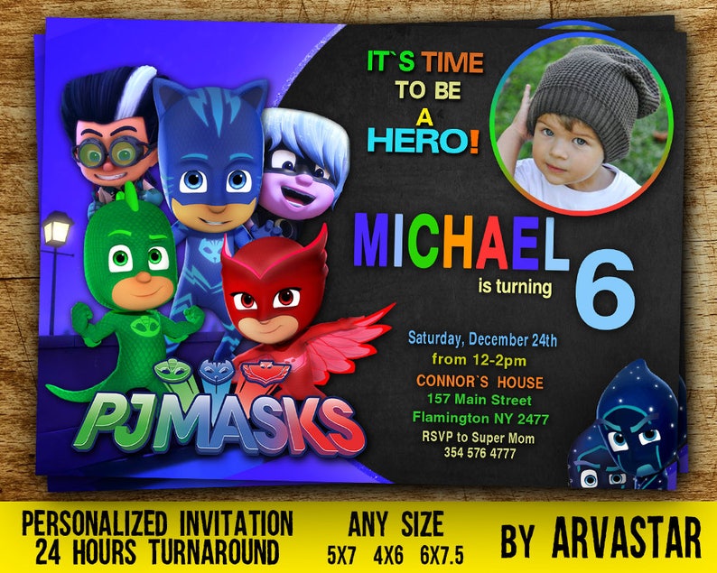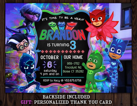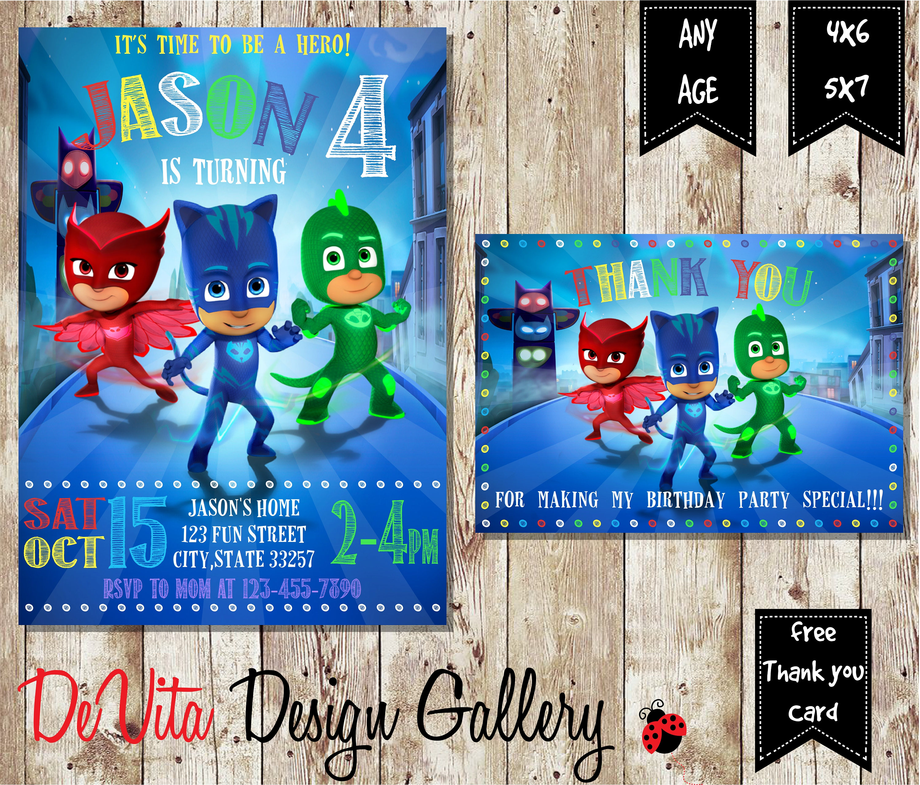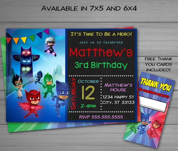 This great if you want to hand write your. With our free templates you can easily make a memorable invitation card. Choose the perfect design customize it and send it out today. This invitation is available in four completely different designs to present you some easy to print options to to your pj masks celebration theme.