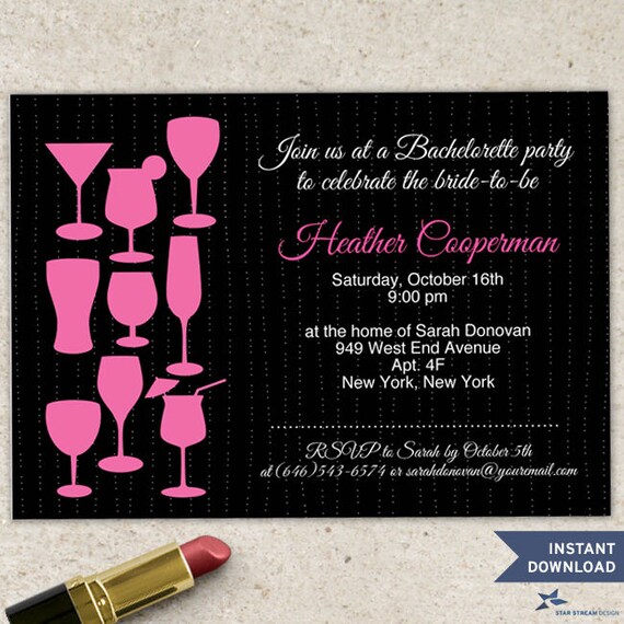 Click here to browse the available invitations and edit it online with drevio canvas. These invites will give your guests important details about the party and even provide a hint at the type of bachelorette party they can expect. The purpose of the bachelorette party is to honor the single life of you and spending the time with close friends and having so much fun with them. Add text and photos.