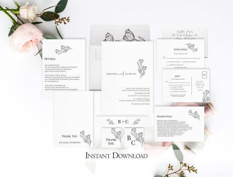 These days wedding template packs are also available making it easier to get a hold of different wedding stationery templates. Garden wedding invitation with floral border design. You can find your favorite design here. You may also see dinner invitations.