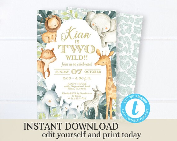 Free Printable Editable Pdf Birthday Party Invitation Diy Safari Jungle Animals Two 2nd Second Instant Download Edit In Adobe Reader Instant Download Printables