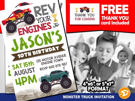 Printable monster jam birthday invitation template. Get it all for free using your hand by clicking on the right and. Monster truck party invitation 57 printable digital file for monster jam birthday invitation template when you download the template youll be able to easily use adobe or different software program to write your texts. Click here to browse the available invitations and edit it online with drevio canvas. Did you scroll all this way to get facts about monster jam birthday invitations.