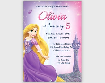 How to download princess rapunzel birthday invitation template for free. You can use them as well for making cards photo frames signs backgrounds and whatever you want. If you are planning a rapunzel themed birthday party for your little one be sure to order these rapunzel themed invitations to send to family and friends. Now you can go to your nearest printshop and start print your invitation.