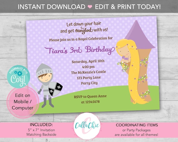 Free printable invitation templates birthday kits templates home. Before printing the royal rapunzel invitation template you need to buy the paper materials. The themed invitation template is free to download for a personal use. Save the image as.