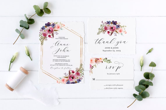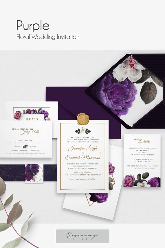 Once youve customized your designs you can send the wedding invitation to print directly within canva. Deep purple wedding invitation template purple wedding invite 100 editable fully editable purple florals templett rsvp details p29. Well youre in luck because here they come. Make an upcoming wedding celebration becomes a memorable event including all the loving and supportive family relatives and friend.