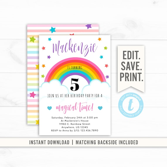 Click here to browse the available invitations and edit it online with drevio canvas. Print you invitation utilizing cardstock paper that brings premium and authenticity feelings to your invitation. A rainbow themed party would be a fun event for your child and involve a rainbow in your invitation. Everybody you know has a birthday.
