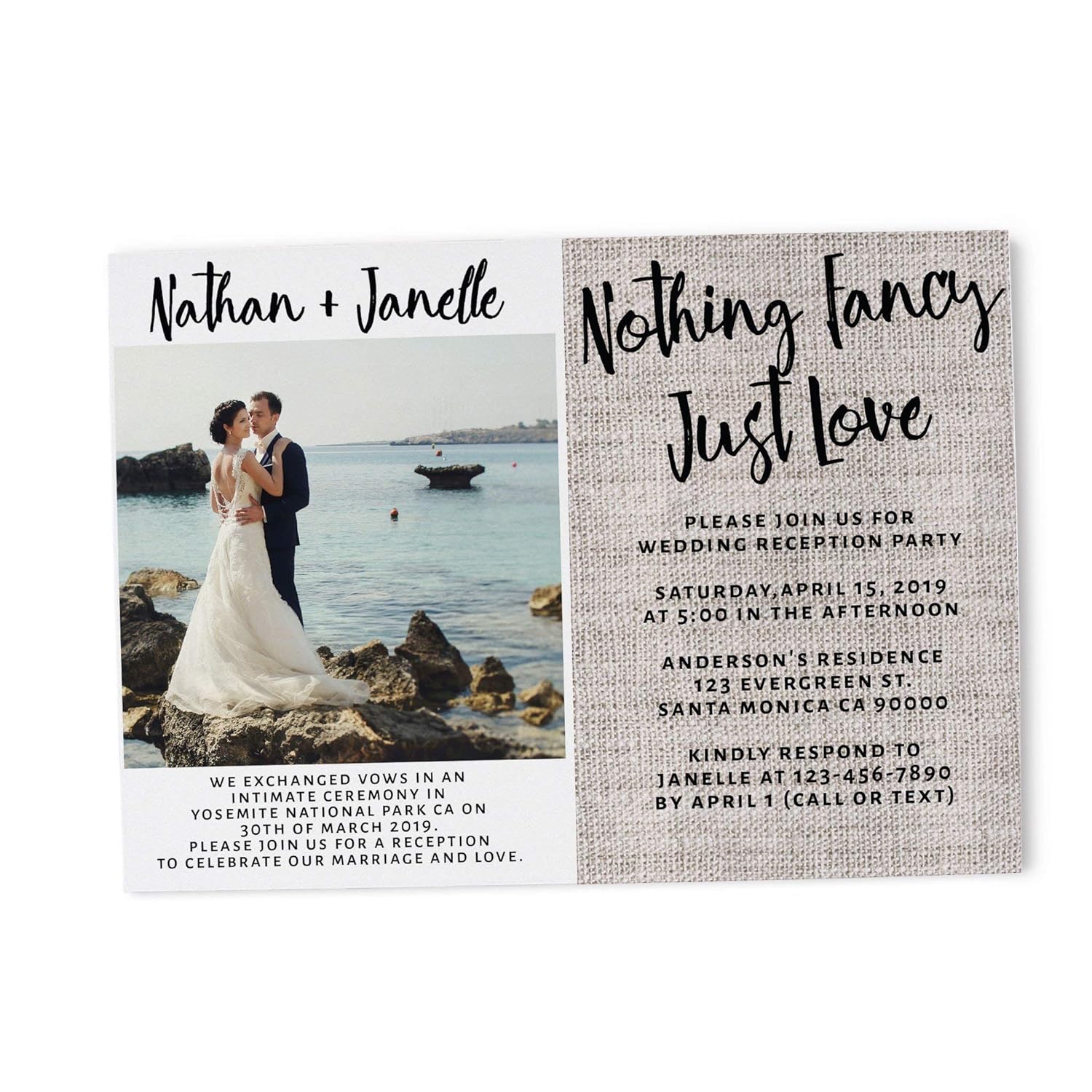 If your wedding reception is a casual affair you can loosen the wording up a bit and have a little fun. Wording can be as creative or simple as you like. Desiring a small private ceremony but a large reception immediately afterward or later. Informal reception only invitation wording.