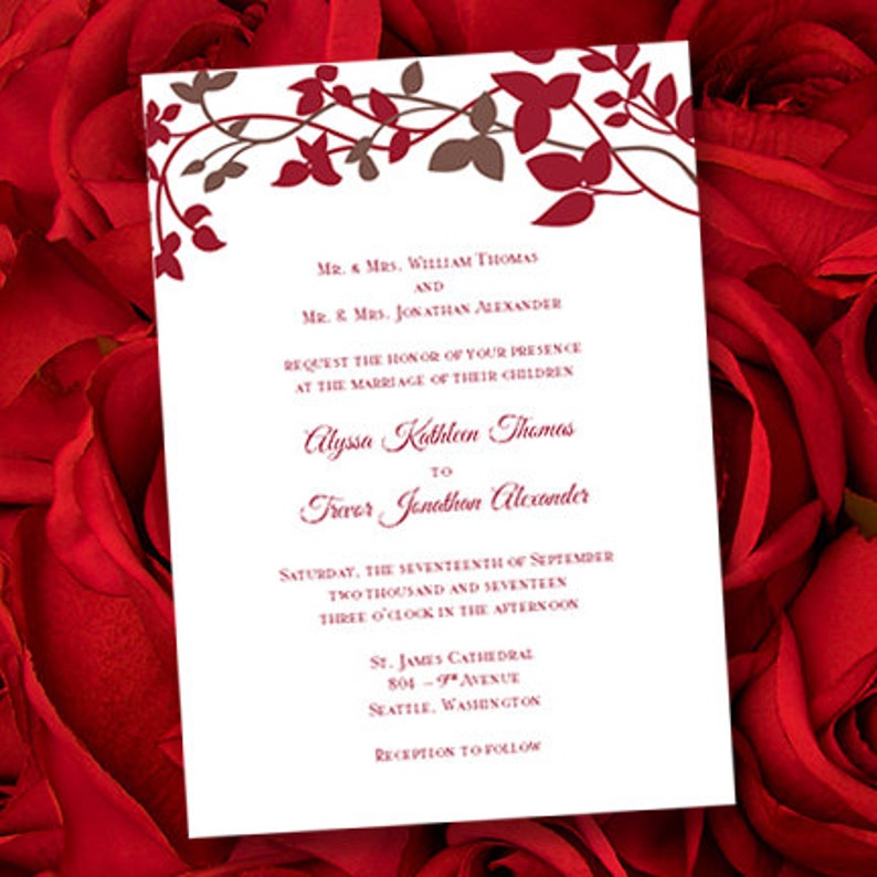 Red blank wedding invitation templates. Wedding chicks has 35 wedding invitation templates in a variety of styles for both the traditional and modern bride. We offer you a free printable blush and gold wedding invitation template. Available in 4x6 5x7. Simply follow the directions given on each invitation template and youll have a personalized wedding invite ready for printing in minutes.