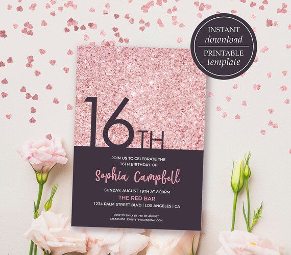 With our variety of designs for every party theme customizable text and fonts you can fine tune your invitation to keep the secret of a surprise ask for charity donations in lieu of gifts include parking instructions whatever will keep your event on track. Sweet 16 please joins us to celebrate the 16 th birthday of name please join us for a 21 st surprise birthday party honoring name. Create rose gold glitter birthday invitation. Everybody you know has a birthday.