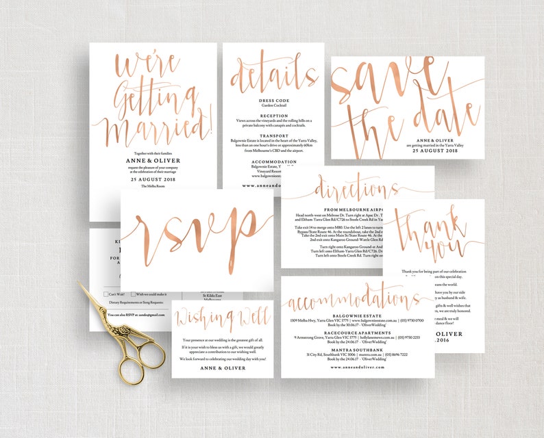 Wedding invitation card template set with watercolor pink and white rose gold brush. We offer savings of up to 96 off the rrp on design elements from thousands of independent designers.