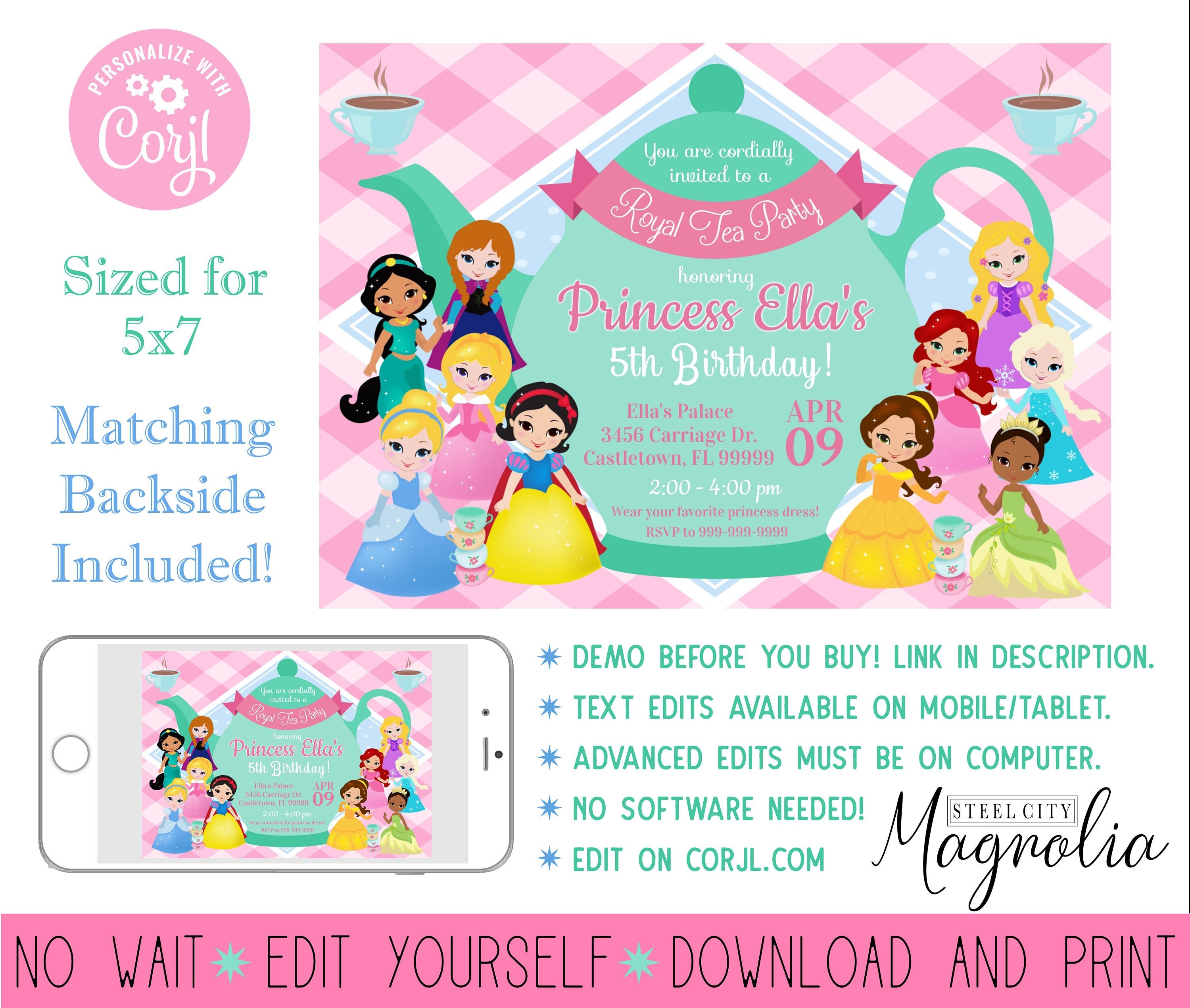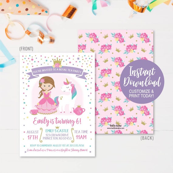 Royal tea party invitation template. The party will be decorate as in the princess tea party. Favorite add to see similar items more like this. Girl invitation princess castle royal celebration birthday party can personalize colors wording printable file or printed cards. Printable invitations by canva whether youre out to throw a bridal shower a graduation party or just looking for any excuse to party youll definitely want to create an attractive and custom made invitation to excite all your guests and have them look forward to the bash.