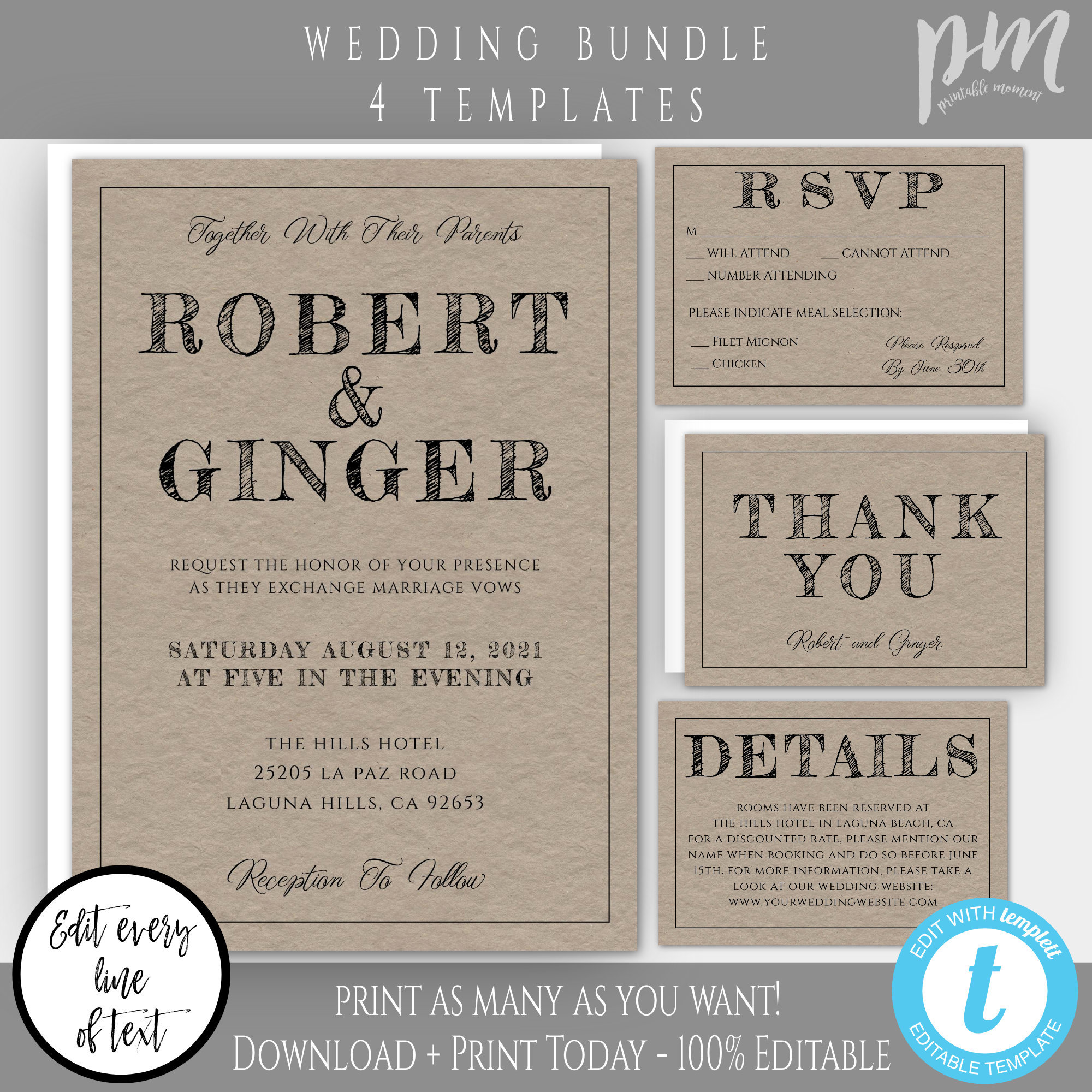 Rustic wedding invitation templates. Customizable wedding invitation templates are a great way to put your own personal spin on your wedding details. They were put together using a combination of pocketfold envelopes ribbon buttons lace and twine and a lot of patience. Weddings can get expensive. Examples of wedding invitations.
