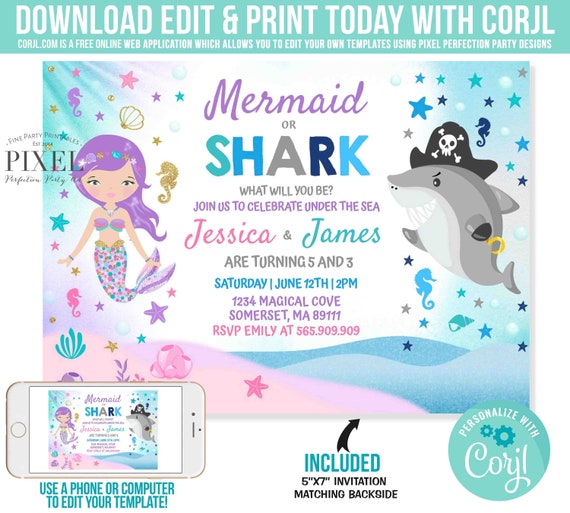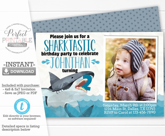 This collection includes baby shark party invitations favor tags baby shark cupcake toppers blank food cards some baby shark welcome signs water bottle labels straw flags and a happy birthday banner. Okay so its pretty obvious how to use a party invitation but ill just explain that i have got two different designs and both have the option to print as you are invited to a birthday party or you are invited to a baby shark party. Download free printable baby shark pinkfong birthday invitation template updated. Free printable downloadable invitations templates for your next awesome party.