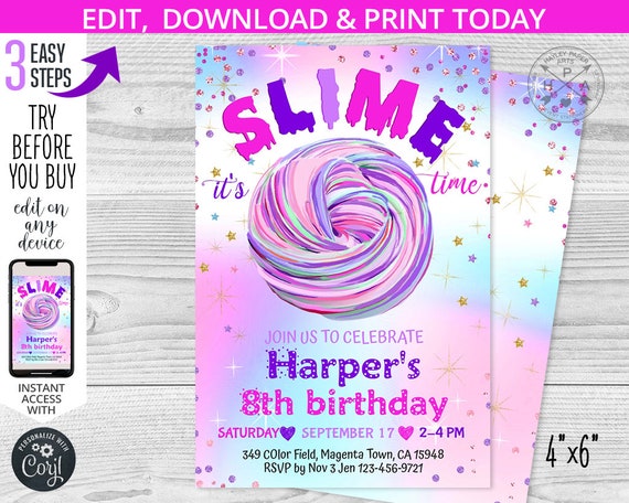 All text is editable so you can customize the wording to suit your own party. Instantly download this slime party invitations template for your slime theme birthday party. 5 out of 5 stars 3139 3139 reviews. Party invitations for your celebration.