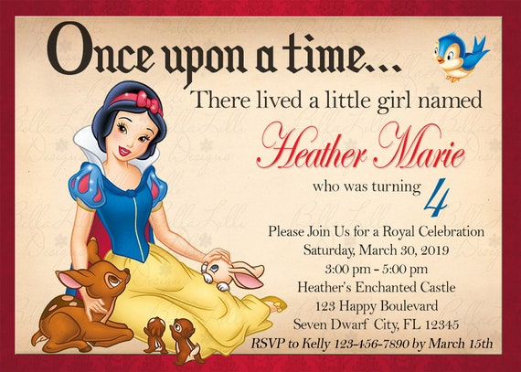 Drevio is your 1 source to download free invitation templates for your birthday party wedding party and any occasions. Here we provide special birthday invitations free in snow white theme. 5 out of 5 stars 31 31 reviews 1000. The birthday party theme is snow white.