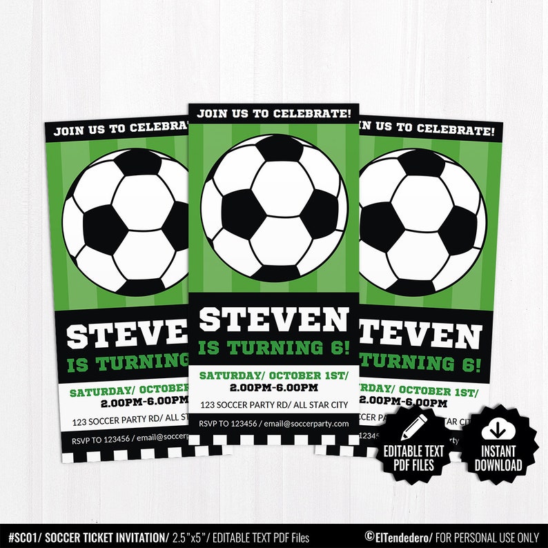 Choose from dozens of free and premium invitations for your kids birthday parties soccer league games charity sporting events and more. Dont worry though canvas got the design part down thanks to our free birthday invitation templates. May 16 2016 need free printable soccer birthday party invitations. Soccer invitation soccer birthday invitation printable soccer party invitation soccer ticket invite sport party digital editable template lemoniepaperie.