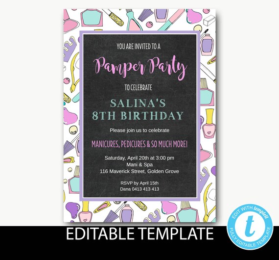 Spa party invitation template. Create spa party sleepover invitation. Your next party or event is important so let zazzle help you find the perfect spa party invitations and leave you with more time to plan for the big occasion. Join us in celebrating names 8th birthday party. Simply click on the right of the image then select save.