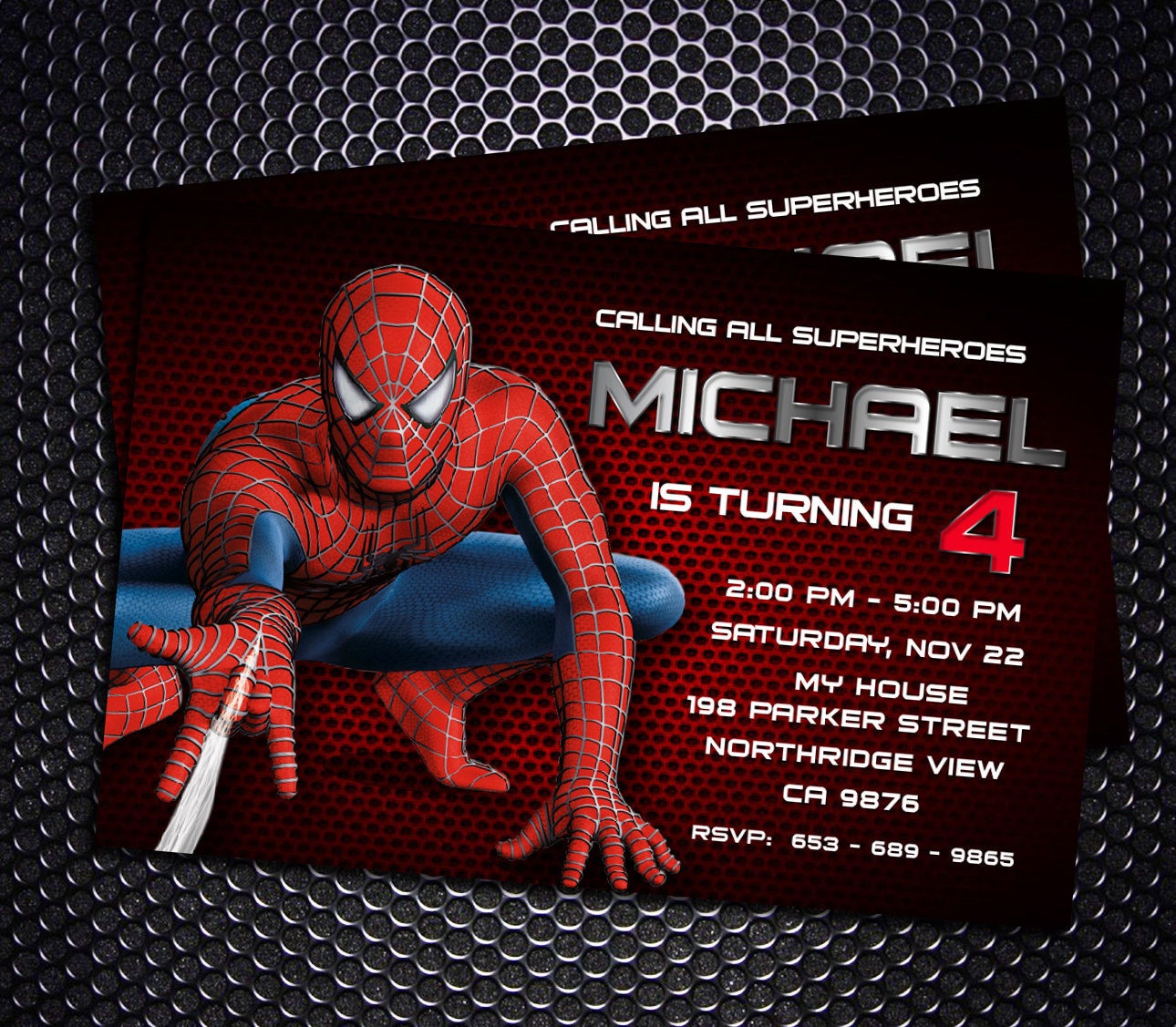 Home birthday by theme spiderman birthday invitations. This product is for one spiderman birthday invitation printable and digital file that will be send to your email after your purchase. Spiderman invitations printing options. Of course with personal use license only.