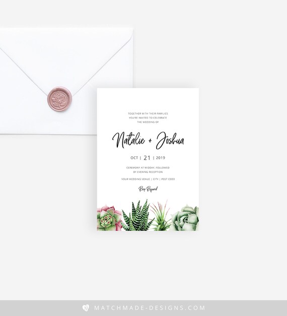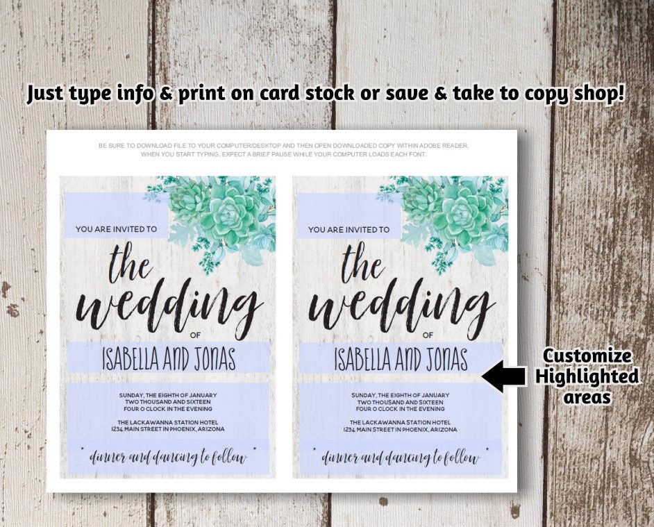 Edit the rsvp edit the details card edit this invitation instantly in your browser download and print. Make sure your message will fit on your invitation by comparing the 2 different succulent invite sizes like 5 x 7 and 425 x 56. Succulent wedding invitation suite template invite inserts calligraphy fully editable set downloadable templett diy sage blue vmt9129 violamirabilisdesign. When you merge amazing invites with unsurpassable print and paper quality you wind up with a succulent invitation that you are positive to love.