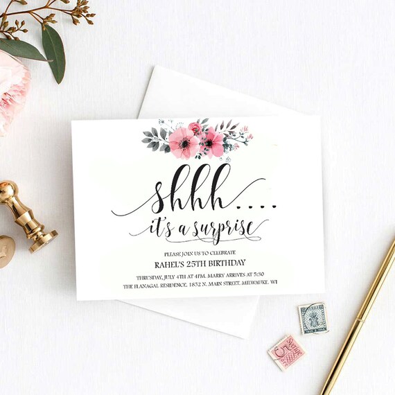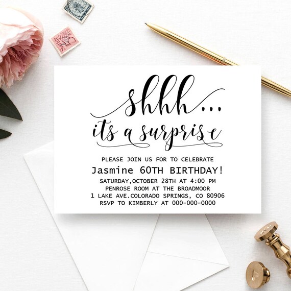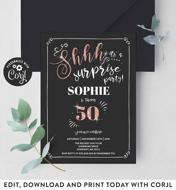 We offer free surprise birthday party invitations that you can customize in minutes. Printable invitations by canva whether youre out to throw a bridal shower a graduation party or just looking for any excuse to party youll definitely want to create an attractive and custom made invitation to excite all your guests and have them look forward to the bash. Pulling off a surprise party is a challenge but the invitations are your ally. Download surprise 50th birthday party invitations templates.