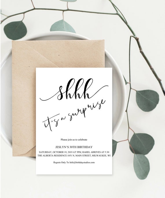 Surprise party invitation template download. Choose from a variety of beautiful styles and themes and invite guests by email or text message and. Available in 5x7 inches bleed. Download faye the halloween surprise is a little confusing. Easily editable printable.