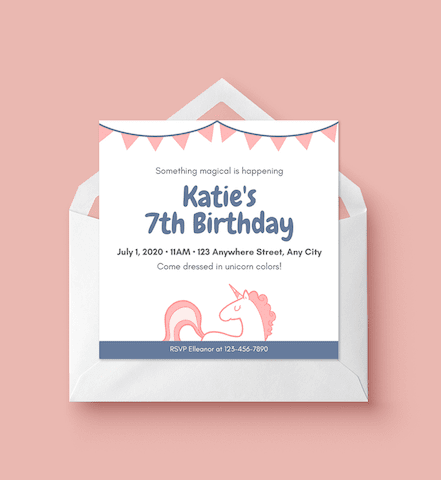 With our variety of designs for every party theme customizable text and fonts you can fine tune your invitation to keep the secret of a surprise ask for charity donations in lieu of gifts include parking instructions whatever will keep your event on track. Look for the event management tools and rsvp tracking to de stress the details. Share your invitations online via sms facebook and whatsapp or print them on your home printer or at a print shop with your downloadable project file. We cant promise that a unicorn will make an appearance but a unicorn party is sure to be magical.