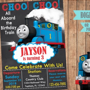 Click here to browse the available invitations and edit it online with drevio canvas. The template provides blank spaces to give you space for writing your invitation. You can choose from pdf and jpeg. If you want a quick and simple printable thomas the tank engine invitation then a jpeg option is a great way to go.