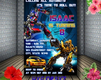 With transformer invitations you would provide your boy with very good invitation templates where you can make a good birthday party with it. If your son is one of the children who likes transformer characters you can organize a birthday party for him in transformer theme. Our collections called transformers birthday invitations can be downloaded for free only on this website. Easily customize and send awesome action packed transformers invitations by email or text message today.