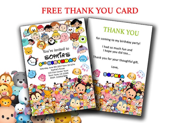 Upon purchasing you will receive a printable digital file in the form of a 300 dpi high resolution jpeg or pdf 4x6 or 5x7. Celebrate your birthday and save your money with our free printable tsum tsum invitation. See more ideas about tsum tsum mickey and friends tsum tsum party. 5 out of 5 stars 201 201 reviews 1000 free shipping favorite add to tsum tsum invitation princess invitation tsum tsum princess invitation tsum tsum birthday party invitation digital file.