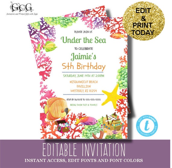 Under the sea is one of the birthday party ideas kids party themes for girls girls birthday party ideas birthday party ideas for girls birthday party themes girls birthday themes with more success as almost any princess birthday party or princess partyits also one of the nicest kids party themes party theme ideas or party ideas no matter if its not a birthday party. Free printable downloadable invitations templates for your next awesome party. Share facebook twitter google reddit whatsapp pinterest email. These mermaid under the sea templates are easy to customize personalize and make great unique birthday invitations.