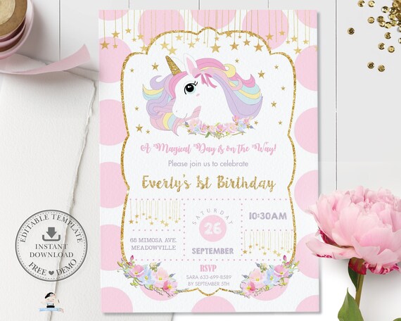 Sophisticated playful cute glam you decide which version of this magical creature will star on your invite. Celebrate the being number one with 1st birthday invites today. Celebrate your perfect unicorn birthday party template.