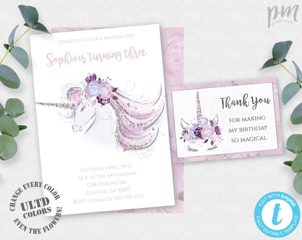 20 unicorn invitation designs for birthday you just have to choose the model you like the most remember that all our unicorn invitation templates are editable. Im still releasing portions of the ultimate unicorn party printable set. Unicorn birthday invitations to print free download. Add a photo options let you include a special photo or transform a sweet face into a uniquely.