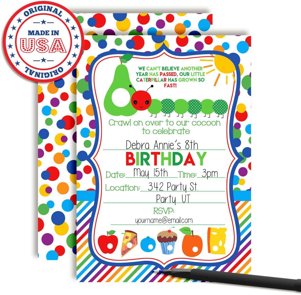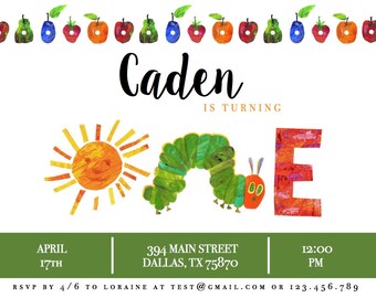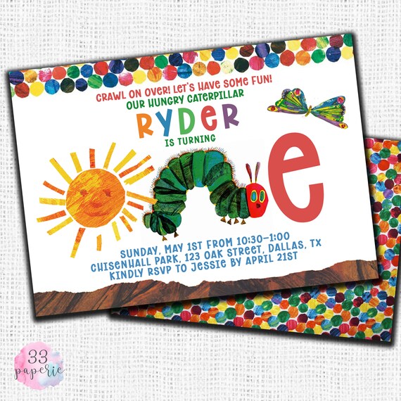 The coolest unicorn party ideas for girls. Very hungry caterpillar invitation template free printable this simple invitation es in jpeg format simply and start print out the jpeg file and write in your party details you can use colored markers to make your invitation more colorful this very. Very hungry caterpillar invitations start as low as 206 so even if youre on a budget you can still get a unique and creative very hungry caterpillar invitation. If you want to celebrate another very hungry caterpillar invitation you should check my free printable very hungry caterpillar invitation without age.