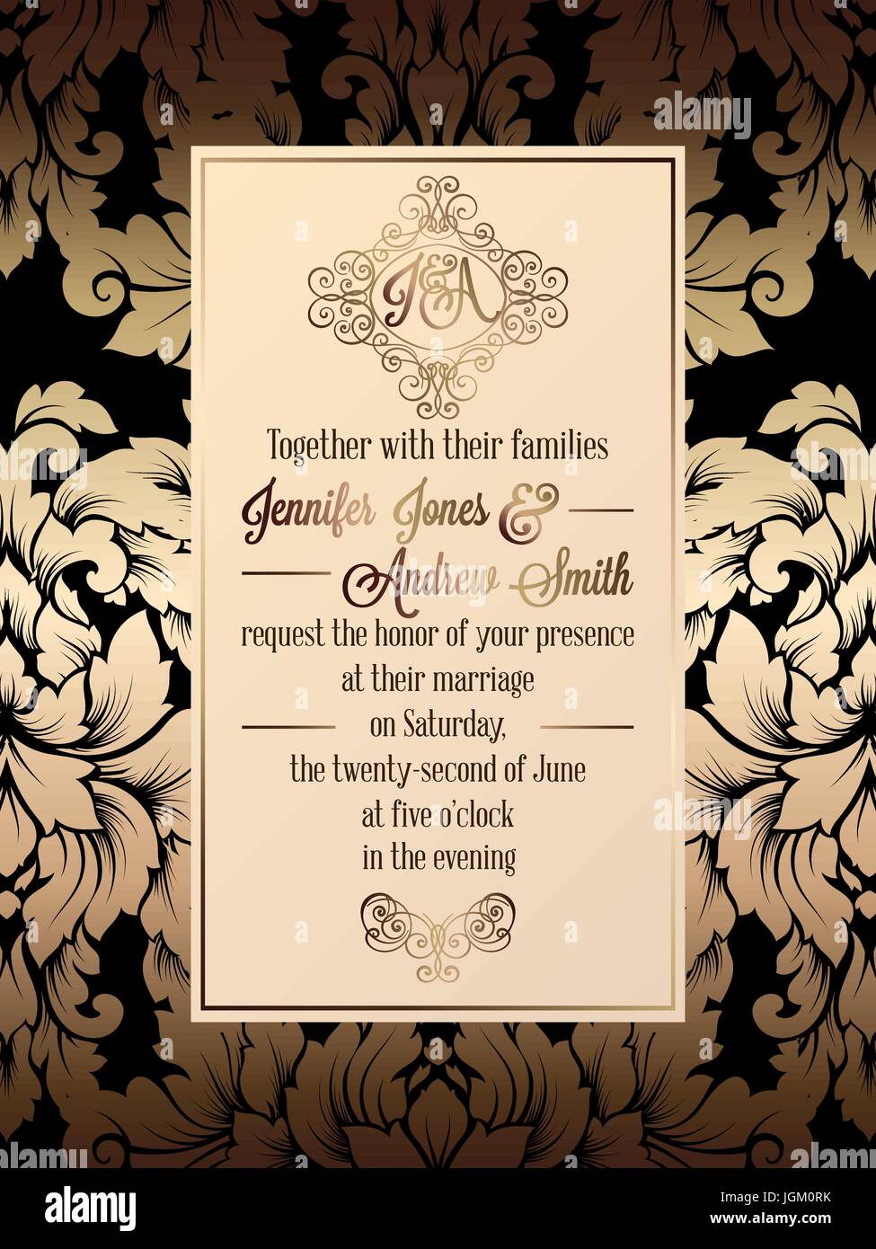 Luxury Wedding Invitation Template Vintage Style Beautiful Gold Decorative With Dark Background Download Free Vectors Clipart Graphics Vector Art