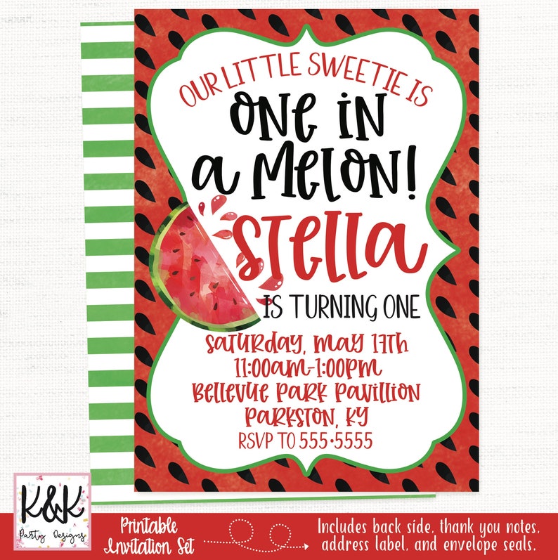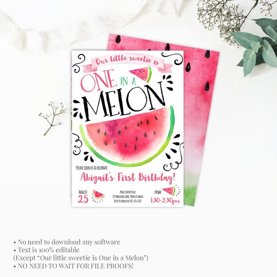 Now you have a formal way to invite them. One in a melon watercolor watermelon 1st birthday invitation postcard. If you ask me how to get the image let me tell you that its printable and also free of charge. Free watermelon birthday invitations download a free printable watermelon party invitation is related to birthday invitations.