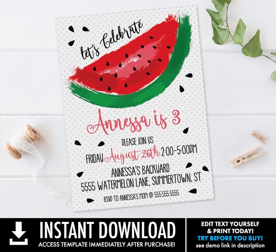 Ready to ship in 1 business day. Watermelon party invitation free printable pdf. These watermelons are also very easy to cut out so if you are inviting 25 kids to your house at least you know that cutting out the invitations will be the easy part. And by formal i mean a printable invitation that isnt formal at all.