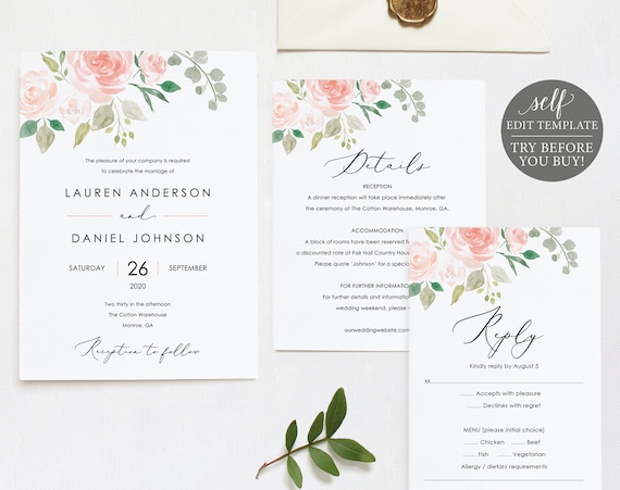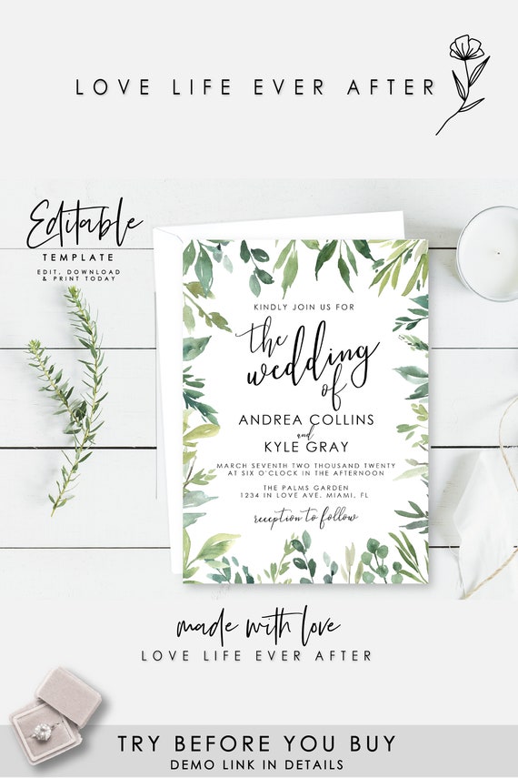 Wedding invitation template etsy. Customizable wedding invitation templates are a great way to put your own personal spin on your wedding details. Well youre in luck because here they come. There are 281711 wedding invitation template for sale on etsy and they cost 1489 on average. If you want to have a vibrant or vintage invitation card frame for it choose one from our wide selection of premium wedding invitation templates that you can download for free.