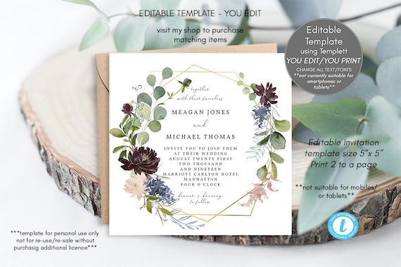 Simply follow the directions given on each invitation template and youll have a personalized wedding invite ready for printing in minutes. Instantly download wedding invitation templates samples examples in microsoft word doc adobe photoshop psd adobe indesign indd idml. Beautiful floral watercolor wedding invitation card template. Foliage wedding invitation template set with burgundy and brown watercolor floral bouquet and border decoration.
