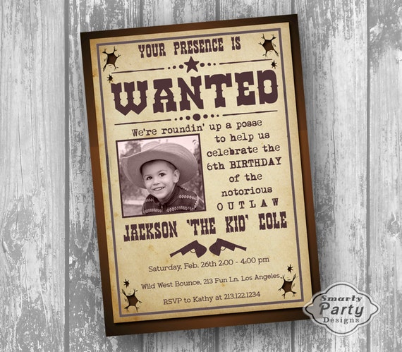 Add text and photos. From shop laurenlooks 699. Download as pdf or image print or send online for free. For a western themed party send out invitations that feature boots cowboy hats ropes and sheriffs badges.