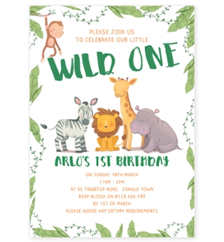 Everybody you know has a birthday. Invite your family and friends by sending out wild one invitations from zazzle. Theres no better way to celebrate your babys first birthday than with a wild one birthday theme. Explore hundreds of pre existing invitation designs that bring new meaning to the phrase party animals.