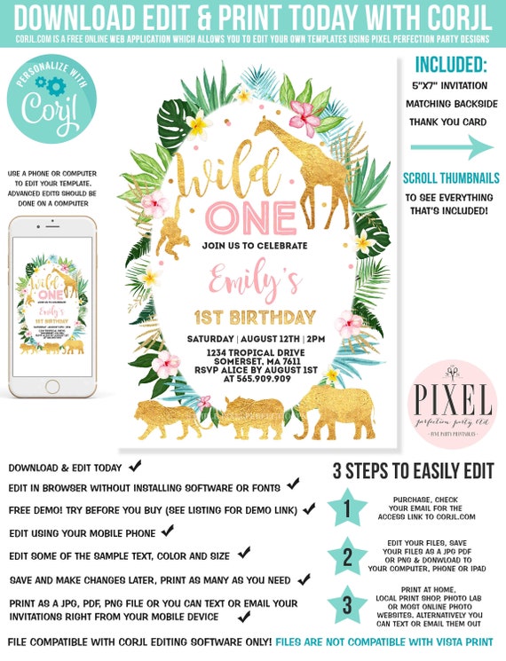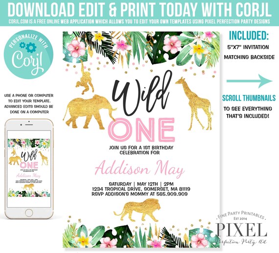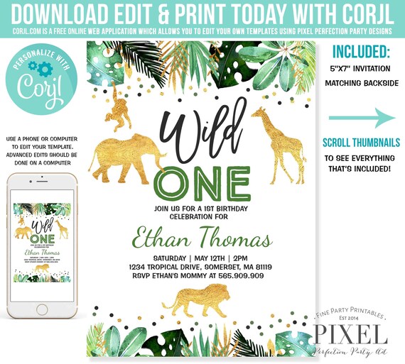 Wildlife wildflowers and wild fonts are featured on these invites for their very first birthday. Download print send online for free. Add text and photos. Lets focus on free printable birthday invitation templates.