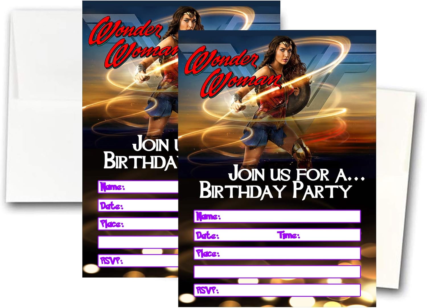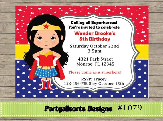 Nice wonder woman free printable invitations for your wonder woman party. Make any day super with a superhero party. Pdf wonder woman invite has type print option. Theres plenty of pow in our super themed invitations.