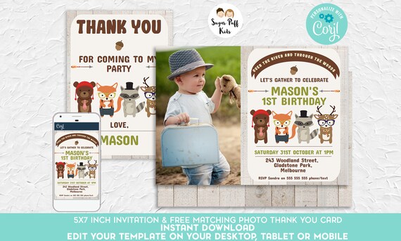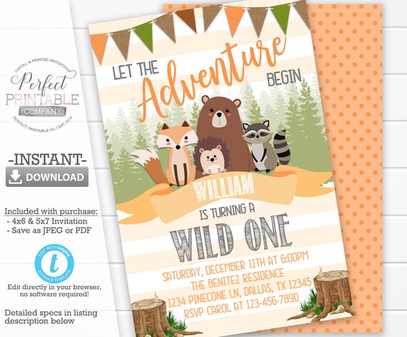 Woodland birthday invitation template free. Free printable downloadable invitations templates for your next awesome party. Click here to browse the available invitations and edit it online with drevio canvas. This cute woodland invitation template is free to use for your personal use only. Easily editable printable.