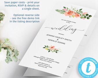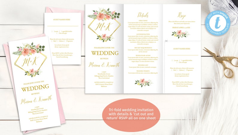 Z fold wedding invitation template. Some z fold wedding invitations even allow you to have your reception wording printed on one of three panels which eliminates the cost of reception cards. Tips for choosing unique wedding invitations. Printable all in one wedding invitations printable seal and send wedding invitation concertina invitation z fold invitation sn009sas studionellcotediy from shop studionellcotediy. Brother creative center offers free printable templates for cards invitations.
